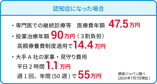 <認知症プラン>で認知症の治療費用に備えておくと尚更安心ね。