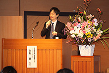 次に、支えあう会「α」の野田真由美副理事長より、罹患した際の気持ちの移り変わりや副作用、医療費について講演しました。野田さんは「がん治療は現在、入院よりも通院がメインとなっており、通院治療を受けながら社会でくらしている人が増えています。患者は副作用や後遺症などの身体的問題や経済的な問題などたくさんの課題に直面します。今ある資源を利用することや正しい情報を得るための支援が、患者や家族を支える力になり、社会の理解が、がん患者のサポートになります。“がんばってね”ではなく、“一緒にがんばろう”という声が非常に励みになります。」と語りました。